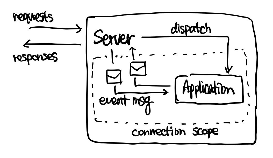 어플리케이션은 이벤트를 받아 처리하고, 다시 이벤트를 서버에 돌려준다.